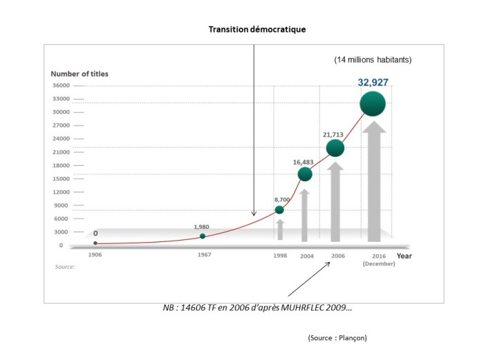 [1] Le projet MCA (annexe 1, note 1) dit quant à lui : « les titres fonciers couvrent moins de 20.000 ha sur 11.260.000 ha soit 0,17% de la superficie du territoire national. Ils concernent moins de 15.000 ménages (1,23%) sur un total de 1210 463 ménages ».